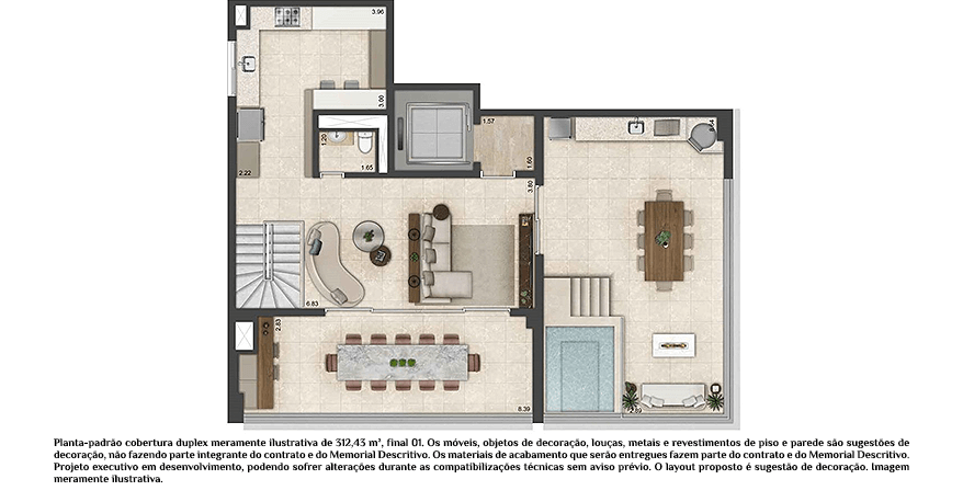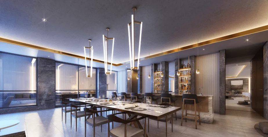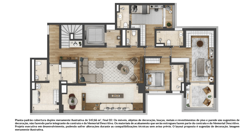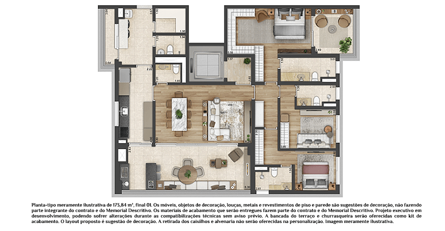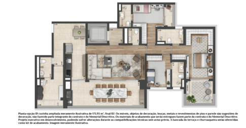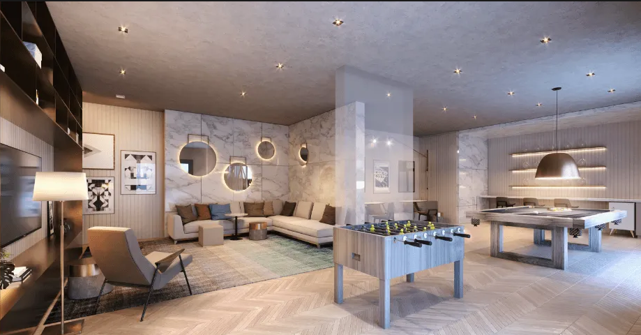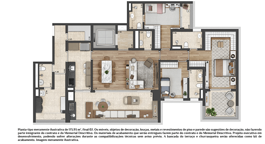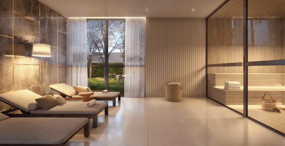 As unidades variam entre 173 m², 312 m² e 342 m², todas com três suítes, varanda gourmet e algumas contando com até quatro vagas de garagem e seis banheiros. A infraestrutura do condomínio proporciona lazer e bem-estar aos moradores, com piscina, salão de festas, churrasqueira, espaço gourmet, salão de jogos, fitness, sala de descanso, sauna e brinquedoteca.
